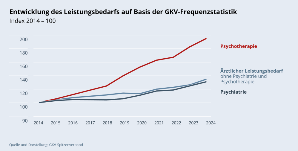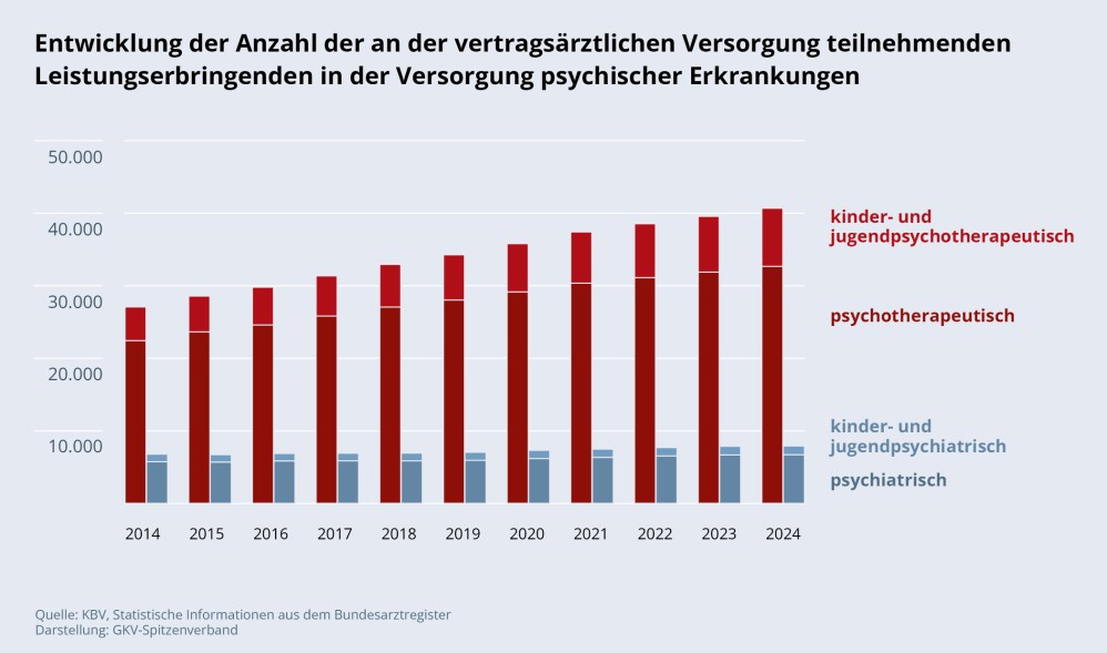 Der gesellschaftliche Umgang mit psychischen Erkrankungen hat sich in den letzten Jahren stark verändert. Während diese früher oft verschwiegen wurden und häufig keine professionelle Hilfe in Anspruch genommen wurde, wird heute viel stärker über psychische Erkrankungen gesprochen. Sie werden zunehmend enttabuisiert und entstigmatisiert. Für die gesetzliche Krankenversicherung (GKV) gehören psychotherapeutische Leistungen selbstverständlich zum Leistungsspektrum – und das schon seit den 1970er Jahren. Inzwischen ist das psychotherapeutische Angebot deutlich gewachsen, der Zugang ist flexibler und einfacher geworden und die Anzahl der versorgenden medizinischen und psychotherapeutischen Fachkräfte ist um ein Vielfaches gestiegen. Dass auch die Inanspruchnahme von Therapien steigt, ist ein gutes Zeichen: Immer mehr Betroffene finden den Mut, sich professionelle Hilfe zu holen.